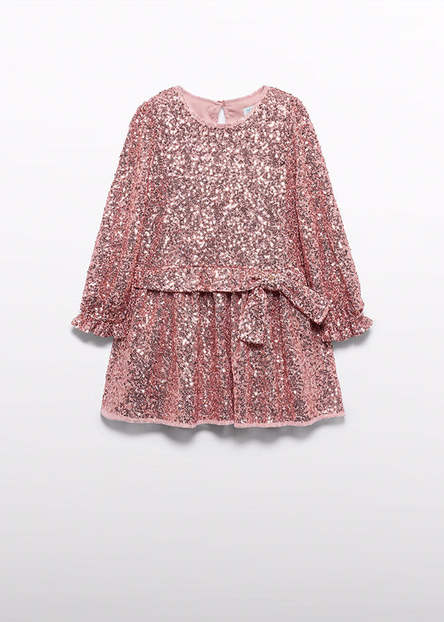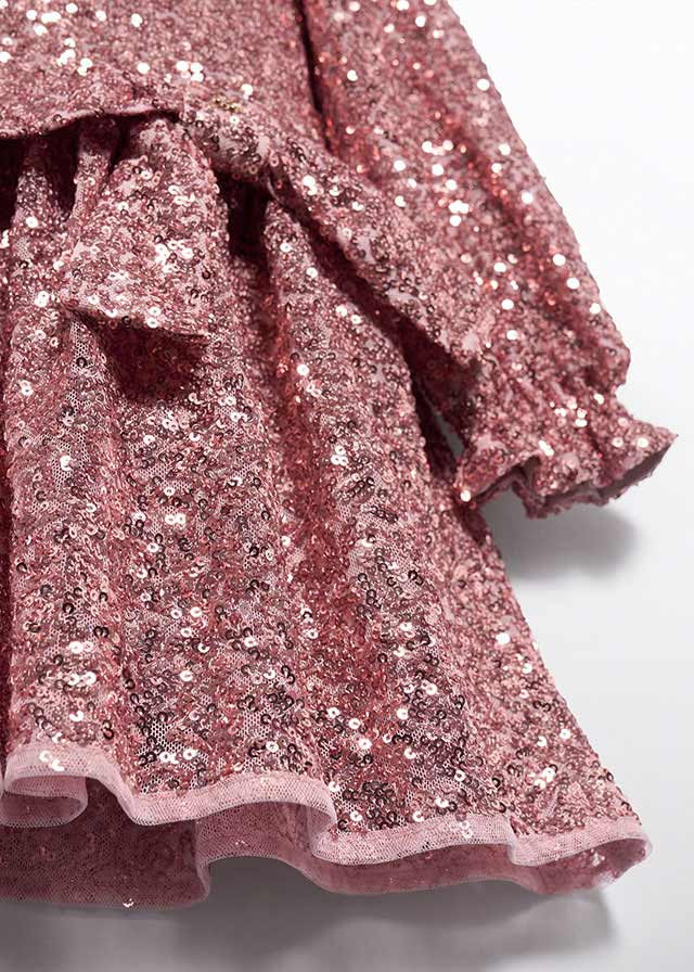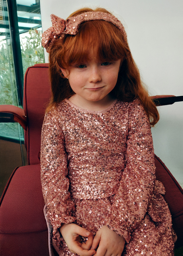 Sukienka z cekinami z kolekcji jesień - zima Abel&Lula, zapinana z tyłu na guzik, kolor rosa.