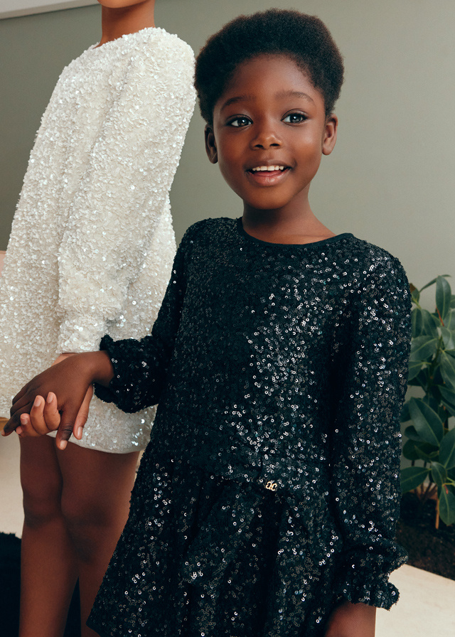 • Sukienka z cekinami z kolekcji jesień - zima Abel&Lula, zapinana z tyłu na guzik, kolor negro.