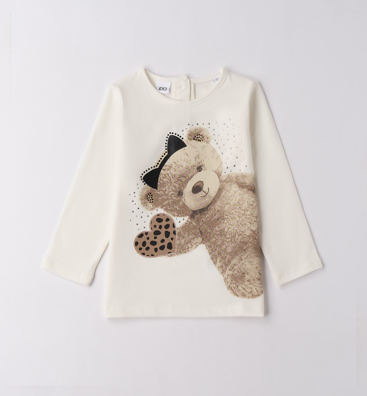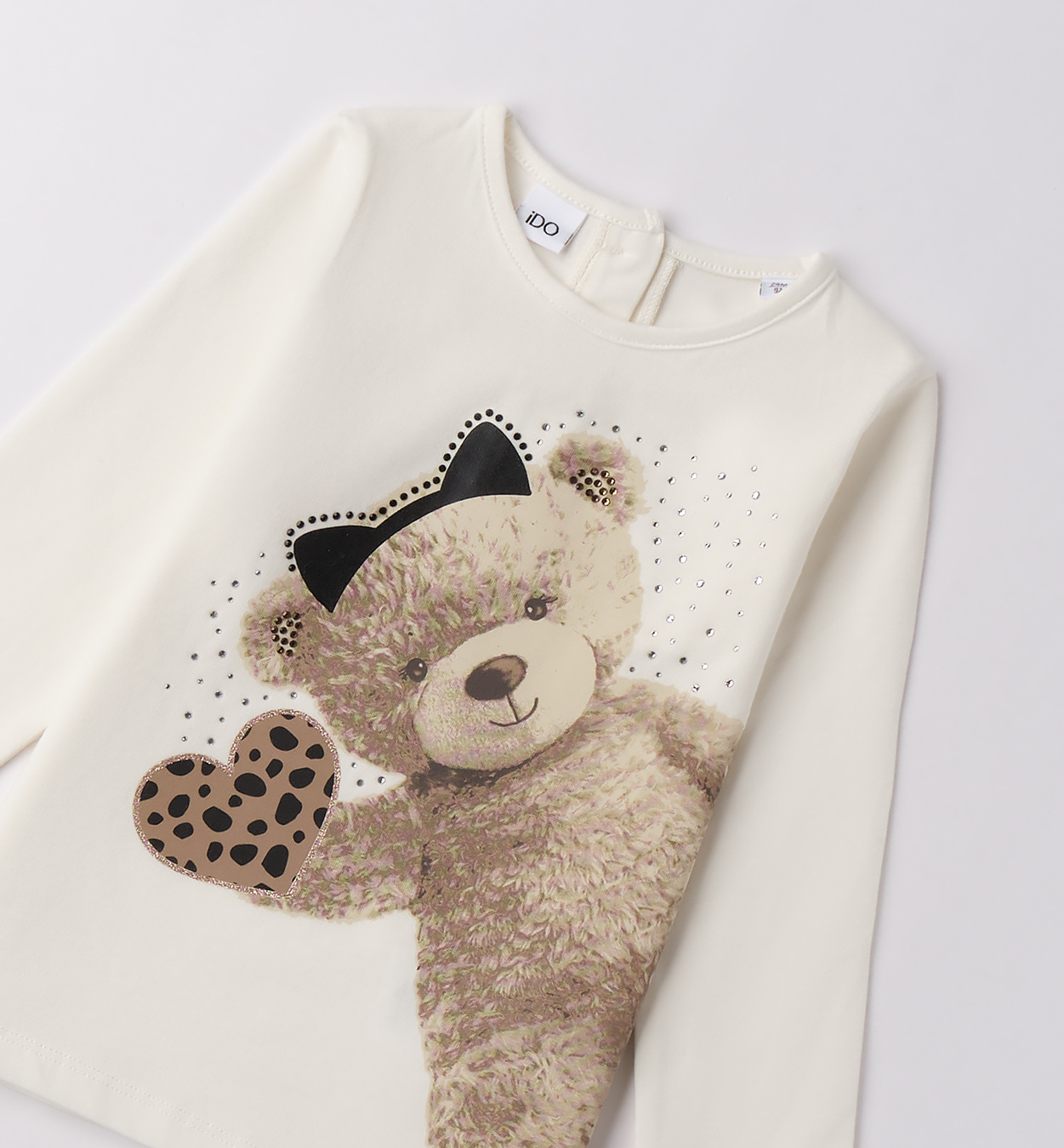 Ido 4F730/00 Koszulka z długim rękawem z nadrukiem Miś Ecru