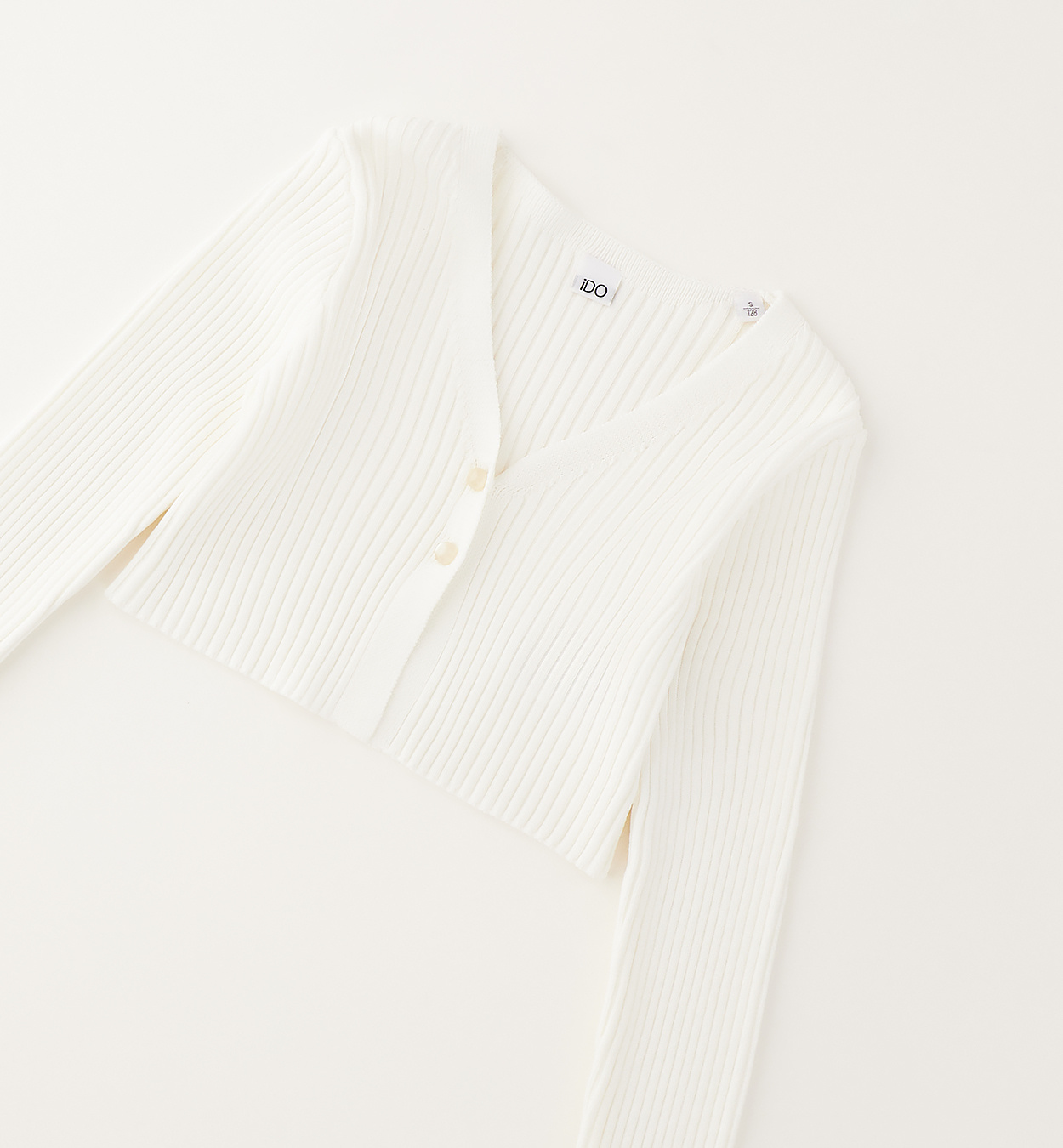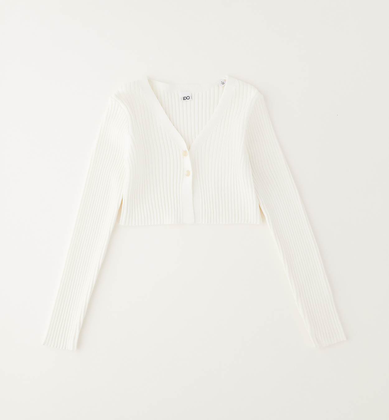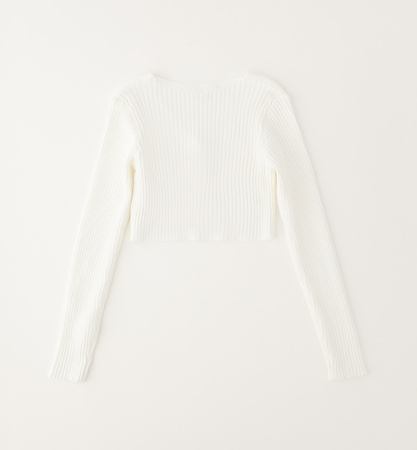Sweter krótki, trykotowy w prążek z kolekcji wiosna - lato Ido, kolor śmietankowy.