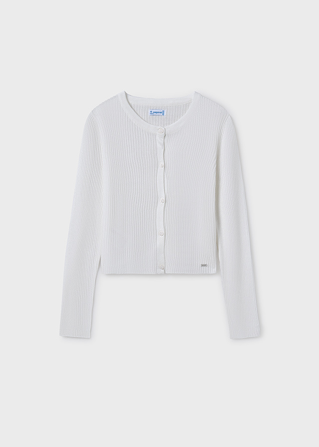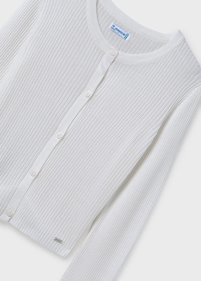 Sweter trykotowy w prążek z kolekcji wiosna - lato Mayoral Junior, kolor crudo.