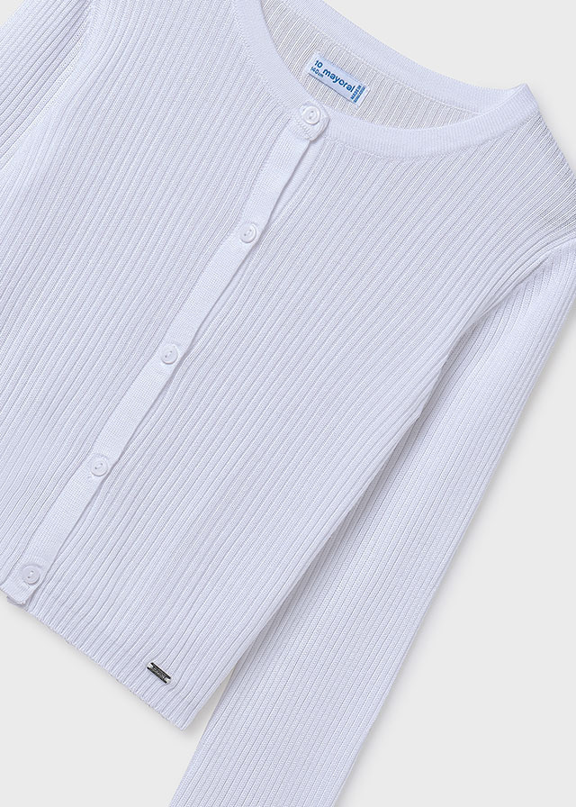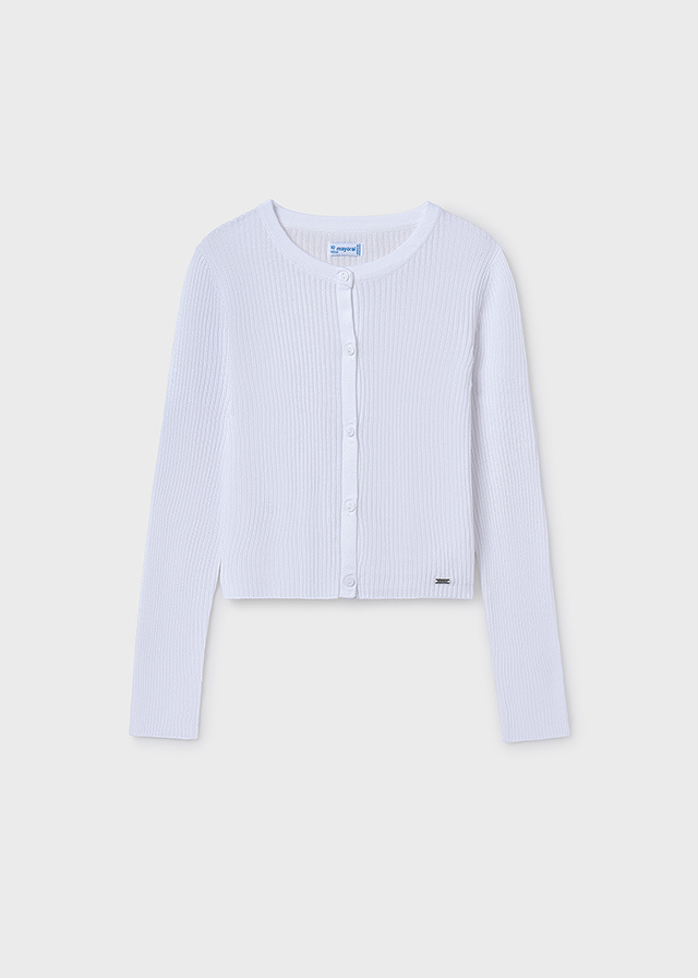 Sweter trykotowy w prążek z kolekcji wiosna - lato Mayoral Junior, kolor blanco.