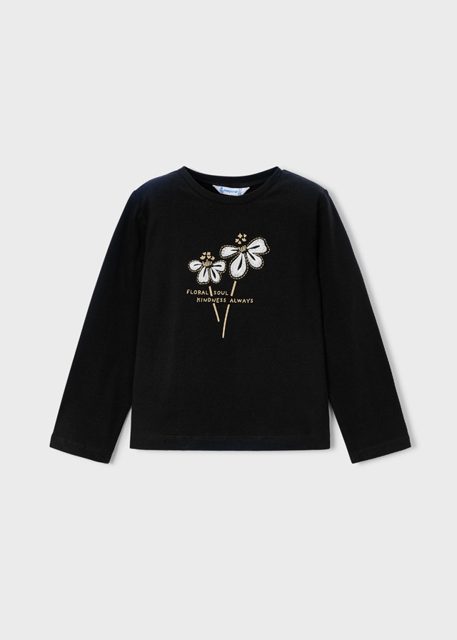 Koszulka z aplikacją i nadrukiem, z długim rękawem z kolekcji jesień - zima Mayoral Mini, kolor negro.