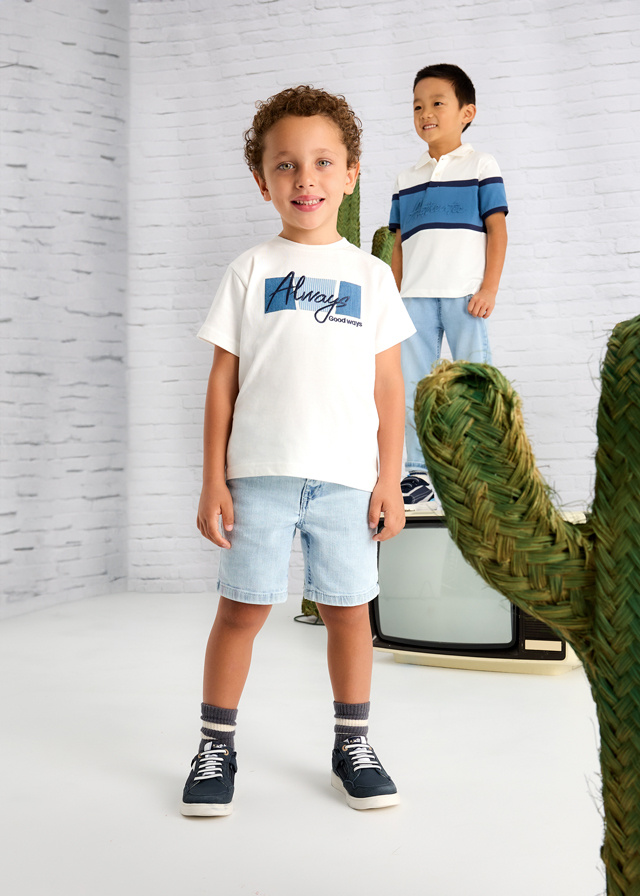 • Koszulka z krótkim rękawem, z aplikacją text z kolekcji wiosna - lato Mayoral Mini, kolor nata.