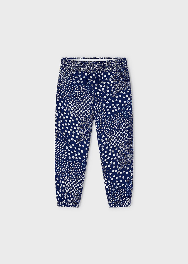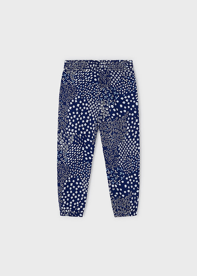 Spodnie z nadrukiem dla dziewczynki z kolekcji wiosna - lato Mayoral Mini, luźny krój, kolor tinta.
