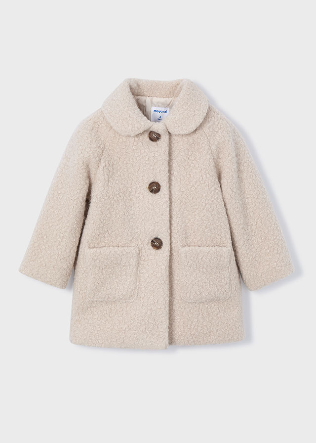 - Płaszcz z kolekcji jesień - zima Mayoral Mini, zapinany na guziki, kieszenie z przodu, kolor arena.