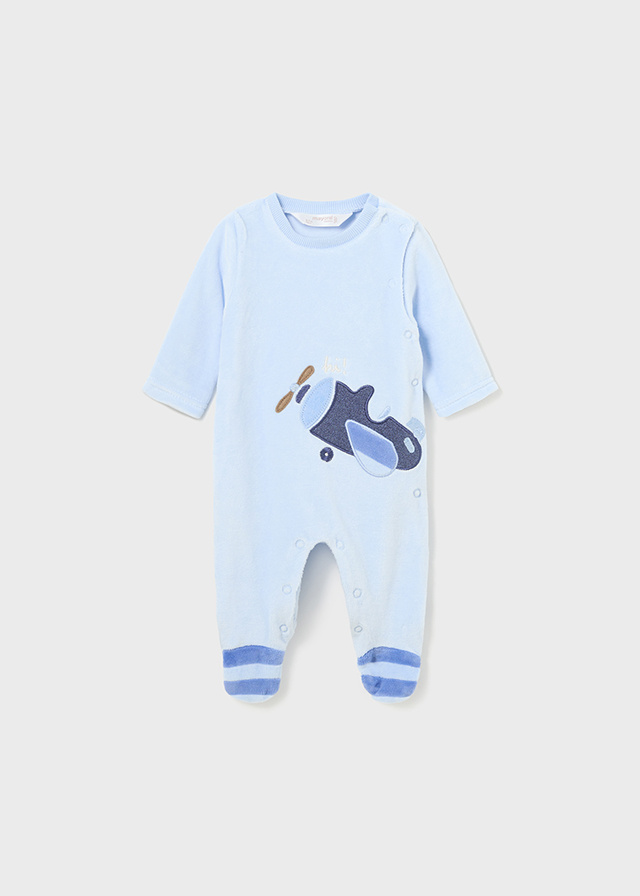 - Komplet 2-częściowy dla chłopca z kolekcji jesień - zima Mayoral Newborn, zestaw 2 pajacyków z aksamitnej dzianiny, kolor cielo.