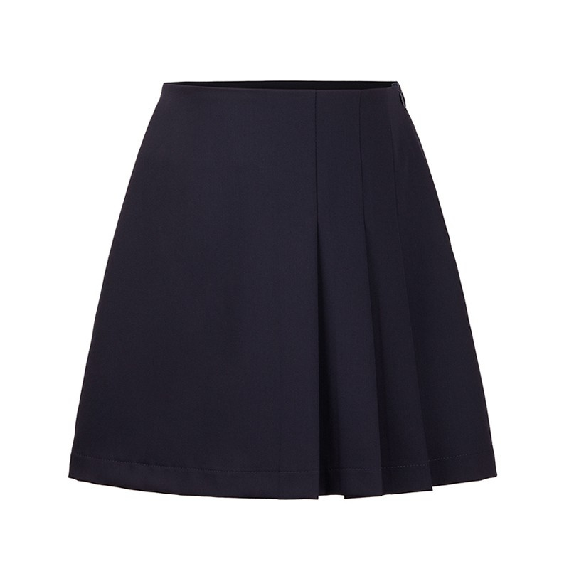 - Spódnica z trzema zakładkami dla dziewczynki z kolekcji szkolnej Minimi, regulacja w pasie, z boku zamek, podszyta podszewką, granatowa.