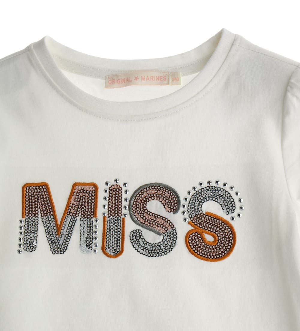 - Koszulka z cekinowym nadrukiem dla dziewczynki z kolekcji jesień - zima Original Marines, kolor ecru.