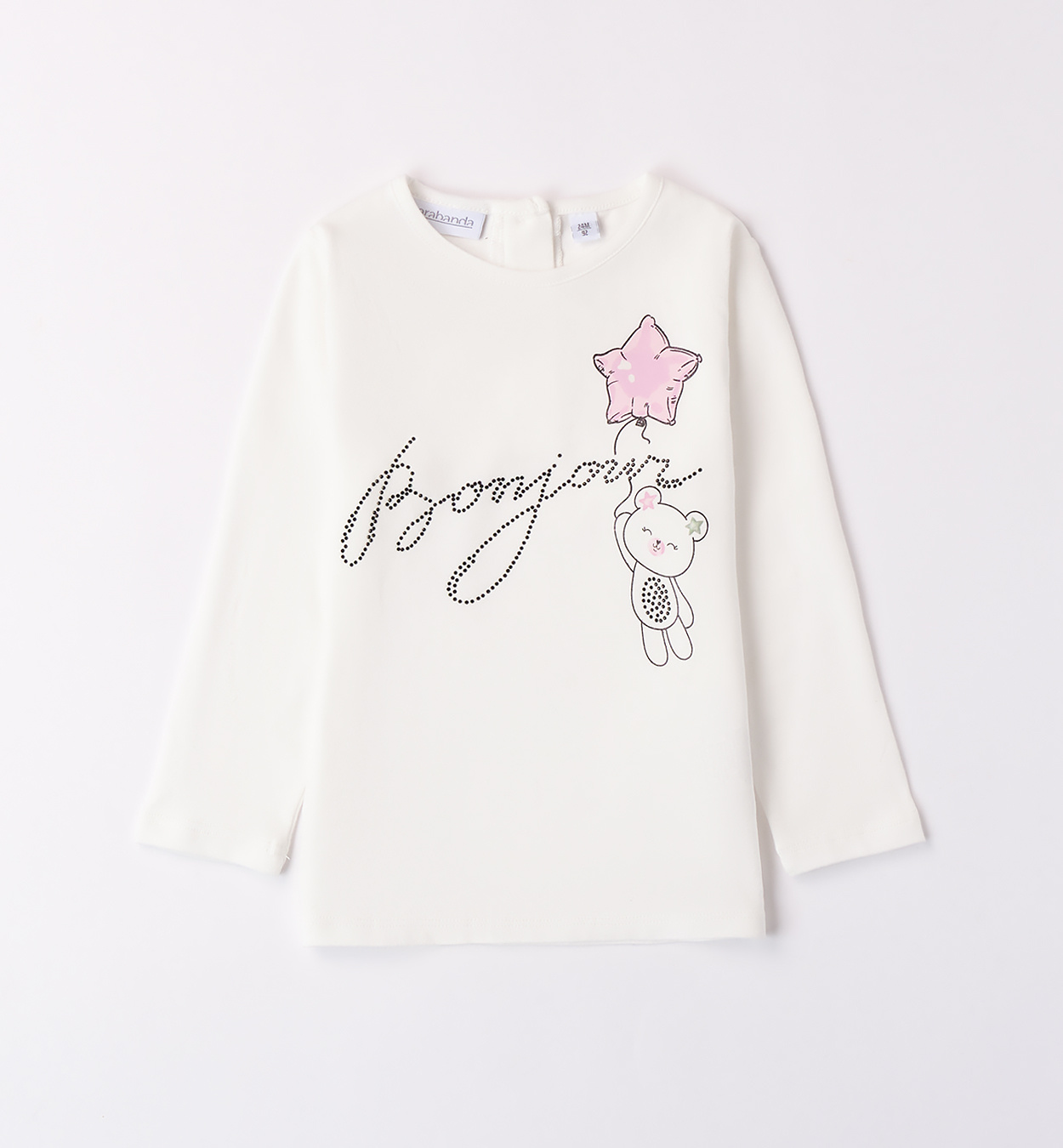 Sarabanda 0A227/00 Koszulka z długim rękawem z dżetami dla dziewczynki Ecru