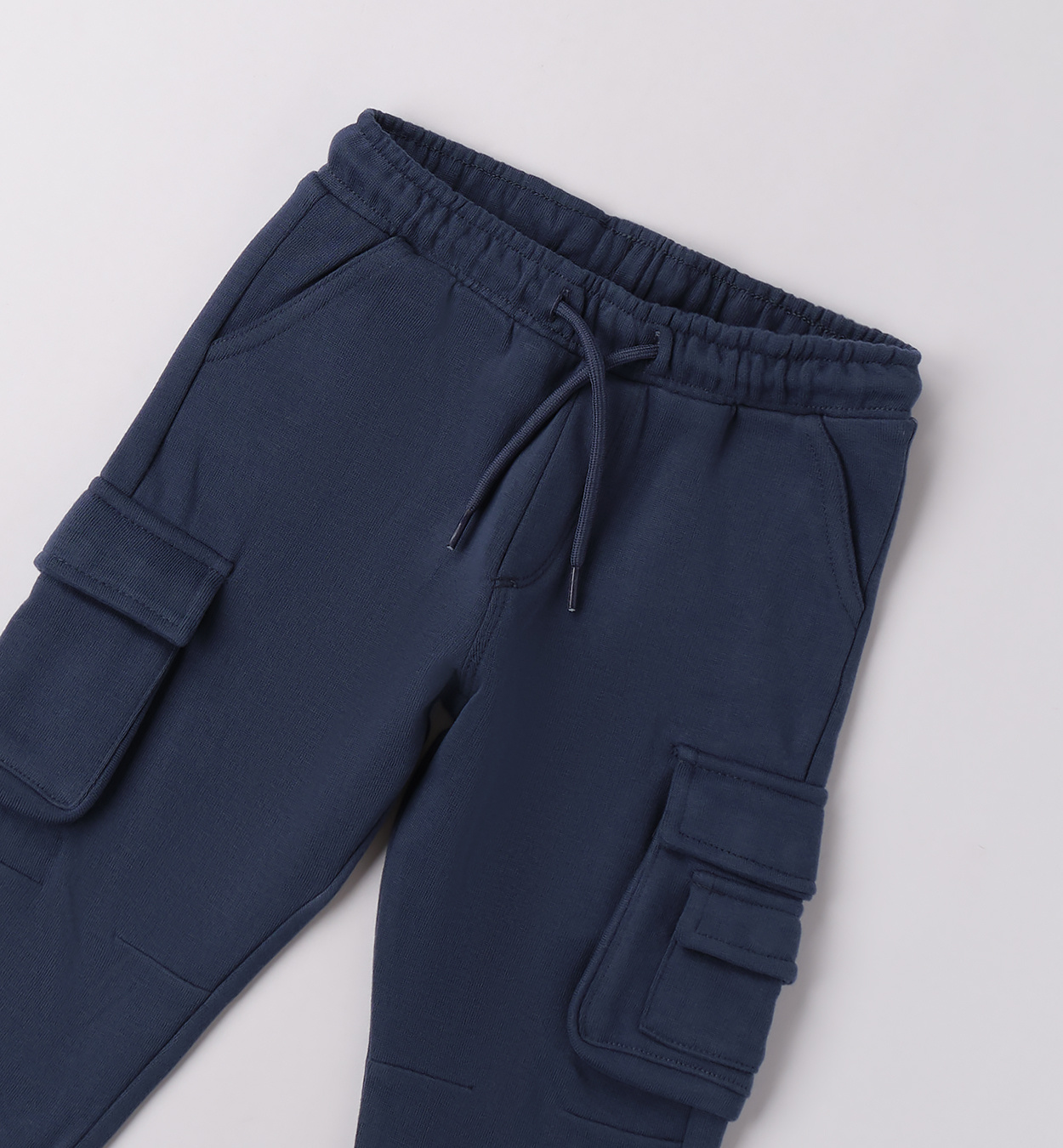 • Długie spodnie z dzianiny dresowej z kieszeniami z kolekcji jesień - zima Sarabanda, w pasie sznurek do regulacji, kolor ciemny niebieski.