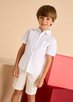 Mayoral Mini 3113-023 Koszula z lnem z krótkim rękawem ze stójką Blanco