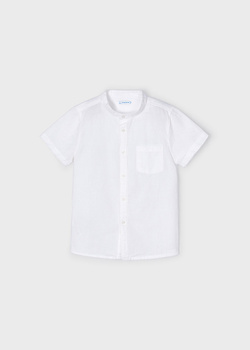 ( ilość produktów: 58 )Mayoral Mini 3161-061 Koszula lniana z krótkim rękawem ze stójką dla chłopca Biała