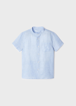 Mayoral Mini 3161-062 Koszula lniana z krótkim rękawem ze stójką dla chłopca Niebieska