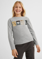 Mayoral Junior 7036-050 Koszulka z długim rękawem z cekinowym nadrukiem dla dziewczynki Szara