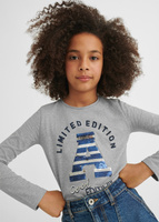 Mayoral Junior 7036-050 Koszulka z długim rękawem z cekinowym nadrukiem dla dziewczynki Szara