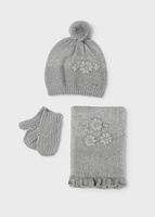 Mayoral 10344-074 Komplet czapka, komin i rękawiczki dla dziewczynki Szary